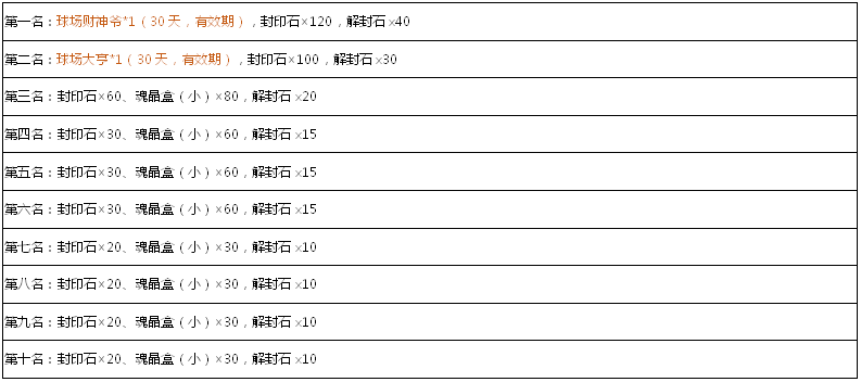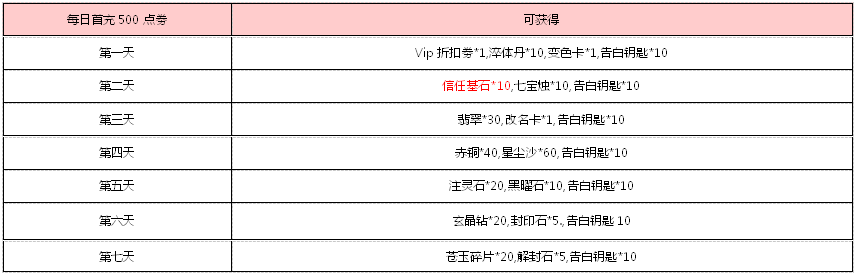 活动奖励: 碎石*10,魂晶盒(小)*10,突破石*5,注灵石*6,金币箱*5,告白钥匙*5
