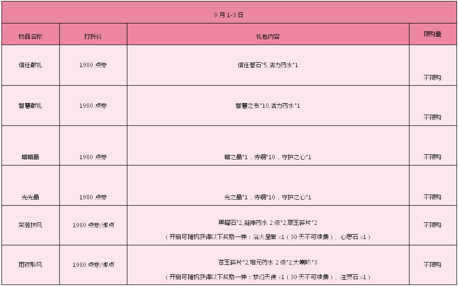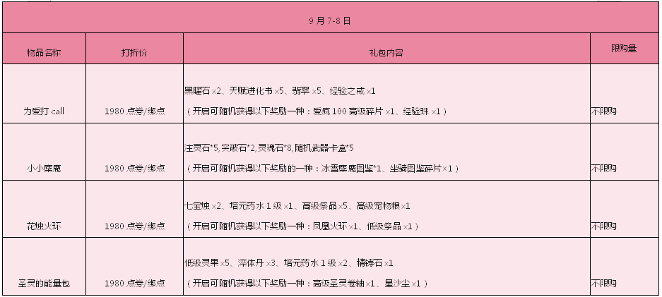活动时间:9月1日—9月7日