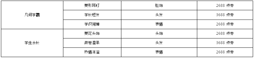 活动奖励:几何学霸*1 或 学生会长*1