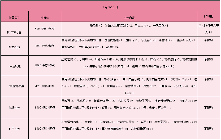 活动时间:9月4日-9月10日