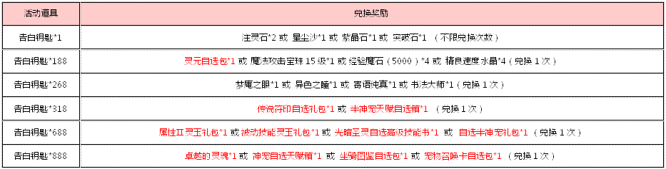 活动规则:活动期间,可使用指定物品兑换超值奖励哦!