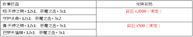 活动规则:在活动期间内,收集齐以下物品,可兑换碎石。