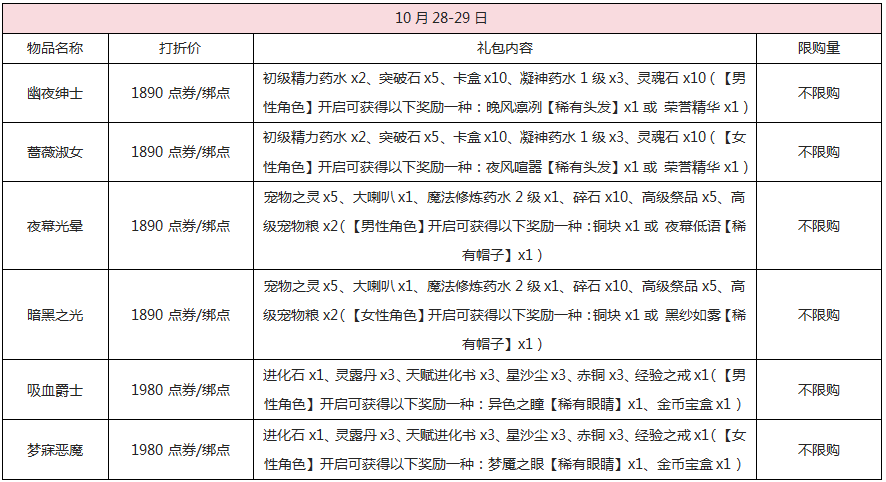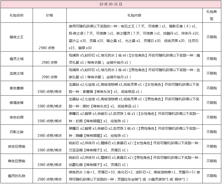 活动时间:10月25日-10月31日 (兑换日11月1日)