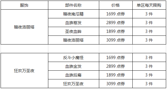 奖励内容:万圣节时装礼包*1(男性角色开启获得男服饰,女性角色开启获得女服饰),不给糖就捣蛋称号卡*1 (永久,全+3)