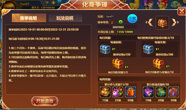 4.每个赛季结束后会根据玩家现有的等级发放赛季奖励。
