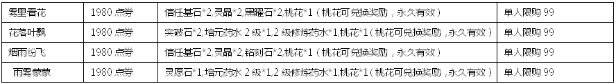 活动道具兑换:桃花*108=白虎摇铃 或 财神小帽 或 玉壶光转 或 凤箫声动(可兑换2次)