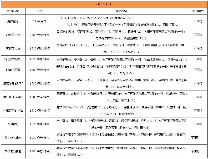 活动内容:2月14日-2月16日活动期间累计充值满29999点劵即可获得新品服饰部件,其他部件可通过服饰抢购购买,所有部件7天可续费哦~