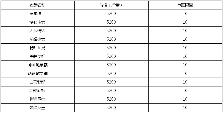 顶级奢华婚礼(原价:520000点券,折后:260000点券)可获得:婚礼捧花*1、祝福口令烟花*1、婚礼邀请喇叭*1、情定终生+3*1,情定终生称号卡*1(各属性+30)