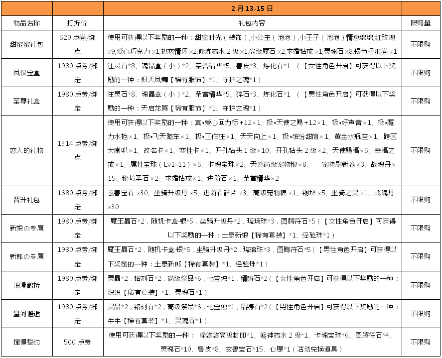 活动时间:2月13日-2月14日