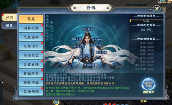 三、消耗神识进行炼神可以获得不同的基础属性加成。