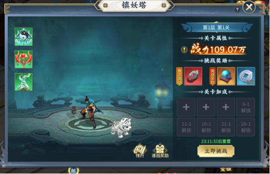 三、首次挑战镇妖塔第二日之后可以进行快速挑战。