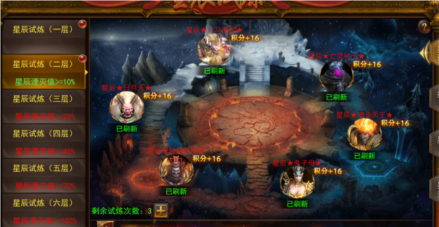 (3)击杀星辰试炼的B0SS需要消耗挑战次数,挑战次数每日拥有3次,次日0点重置次数