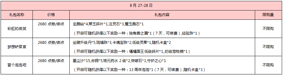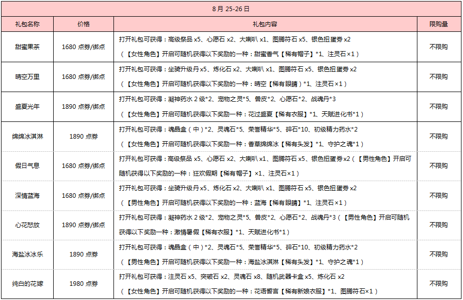 备注:本次单人限购礼包点券和绑点充足的情况下,优先扣除绑点哦。请各位玩家合理理性消费,快乐购买!